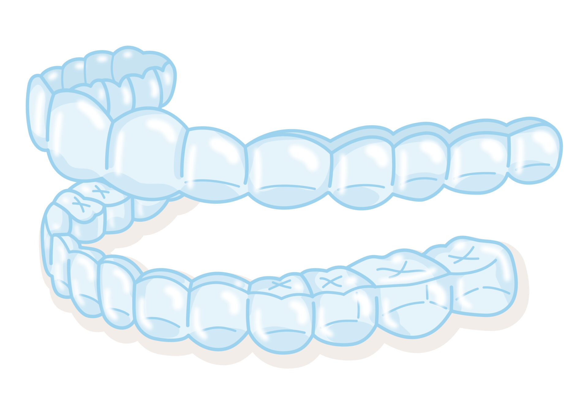 歯ぎしりや食いしばりから歯を守るためのマウスピースです。就寝中に使用することで、歯の摩耗や知覚過敏を防ぎ、顎関節症の予防や緩和にも役立ちます。
